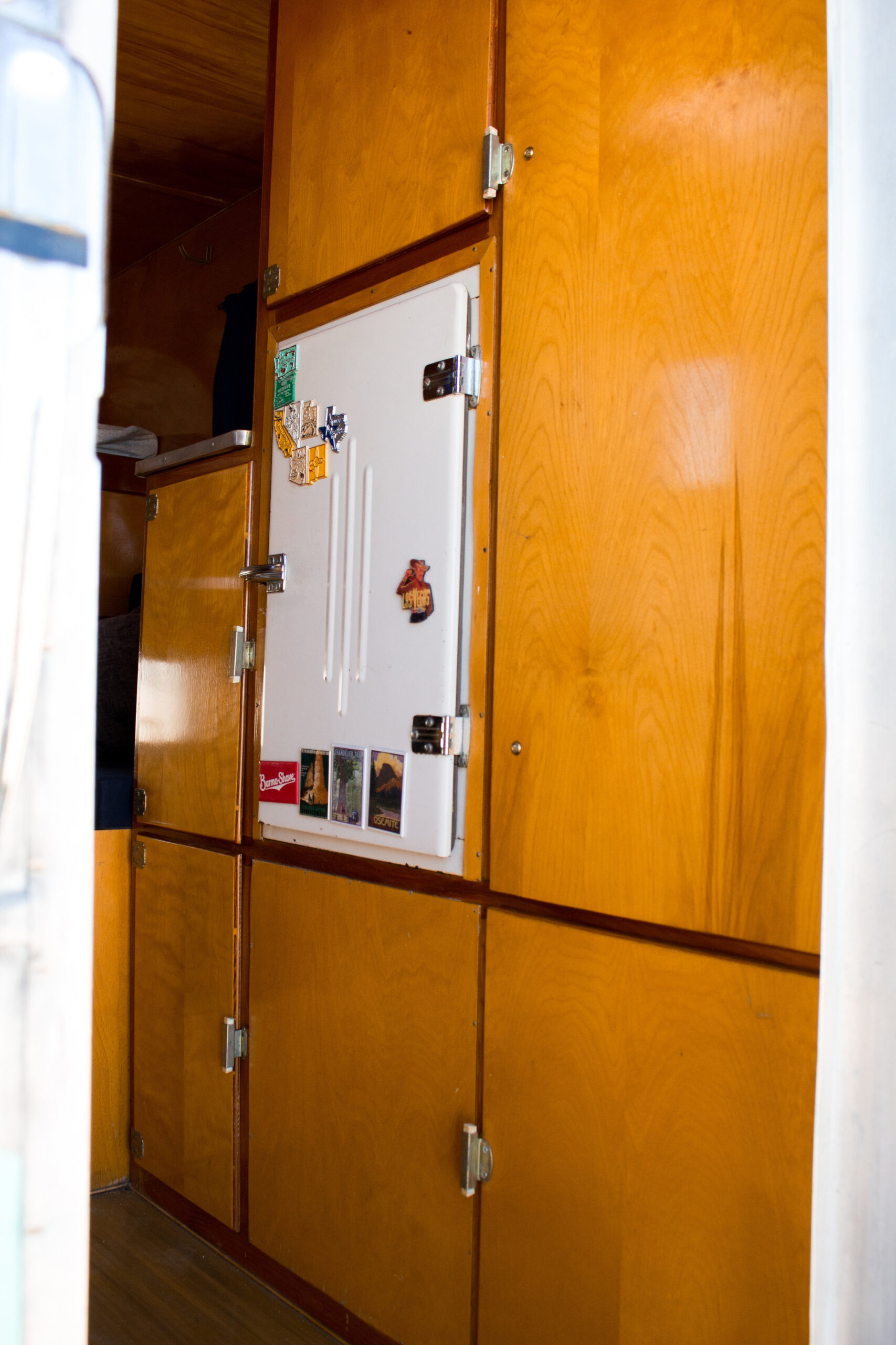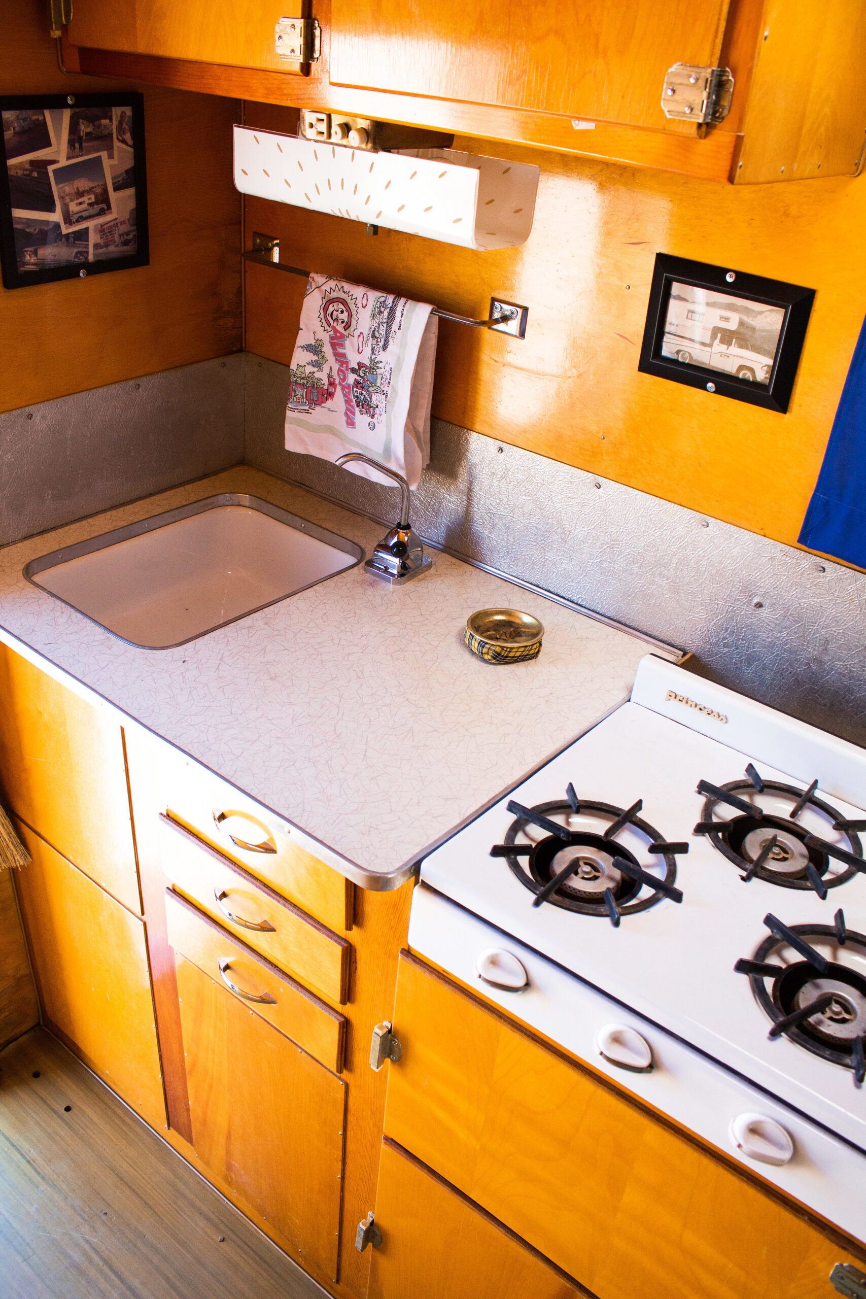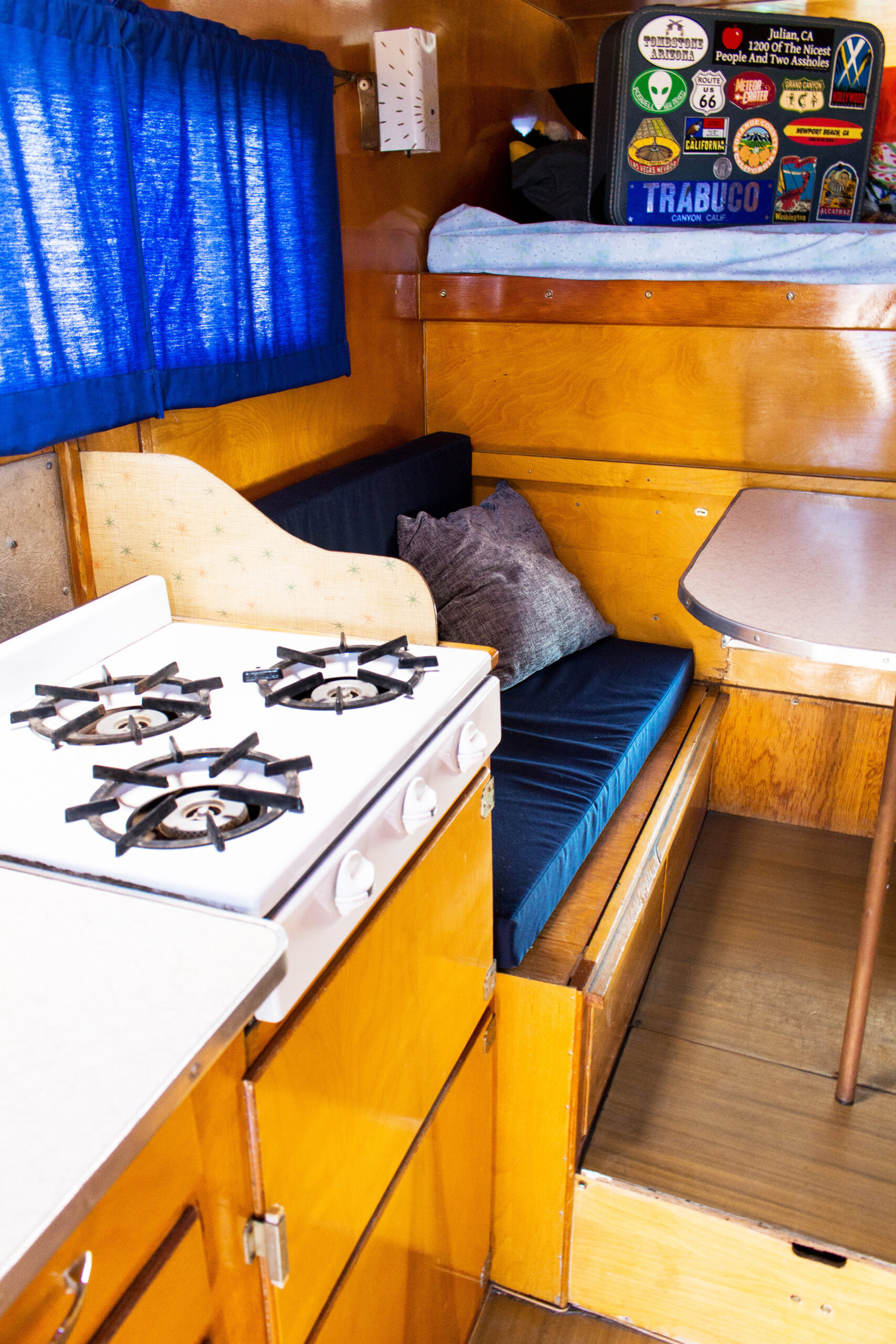 This Romer was in the best original condition of any camper I’ve bought, though it still needed attention. I went through all the wiring, pump, lines, hardware, seals, and reinforced the bottom wood. On the outside, I polished the aluminum and gave it fresh paint. Inside, I added new foam and fabric to make it comfortable again.
