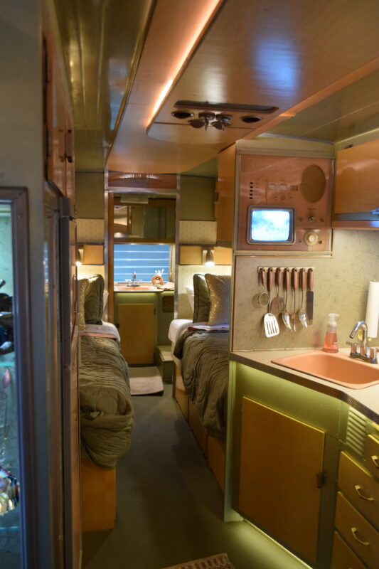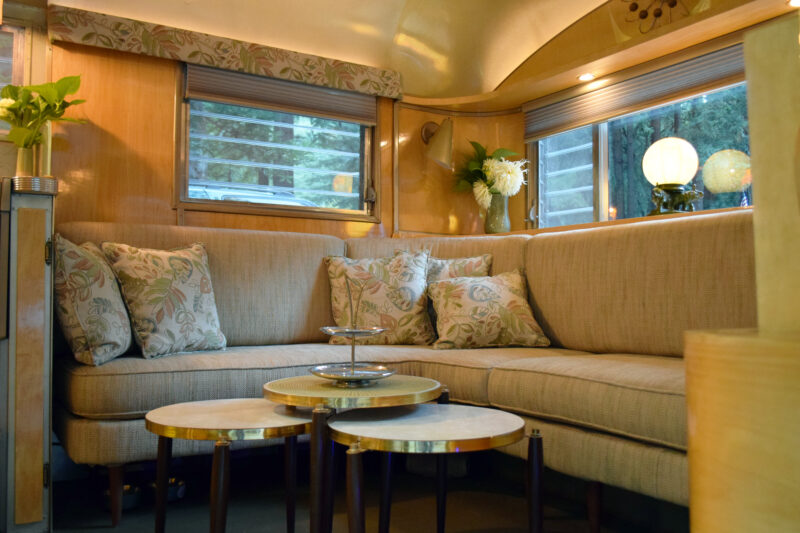 When he first began restoring trailers, Craig—a visual effects artist—knew very little about the process but was eager to learn. He relied on the internet and countless YouTube videos to develop the wide range of skills needed to complete a restoration. Craig noted that restoring a trailer requires mastering several disciplines, but all are achievable. While the Thomases’ trailers look authentically vintage at first glance, Craig’s design background allows him to cleverly hide modern systems throughout. Their Spartanette is even featured in the Vintage Camper Trailers book.