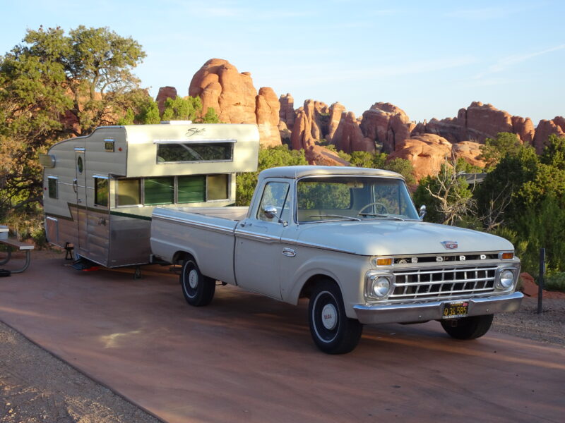 Much of their travel has been behind the wheel of Ted’s 1965 Ford F100, towing their beautifully matched 1962 Shasta Astroflyte. In just nine days, they logged more than 2,500 miles, including a stretch of historic Route 66, traveling from Northern California through some of the Southwest’s most iconic destinations. Their route included Grand Canyon National Park, Monument Valley, Moab, Arches National Park, Capitol Reef National Park, and Zion National Park.