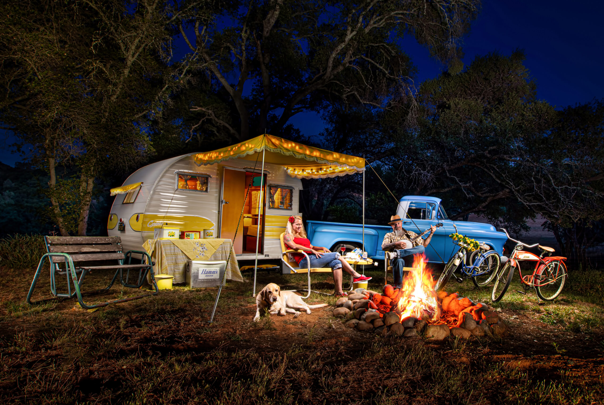 Always a fan favorite, Remmi, a duck hunting Yellow Lab, loves to join the family on their camping adventures. She often makes herself at home in the 17ft camper and wiggles her way onto the bed to sleep!