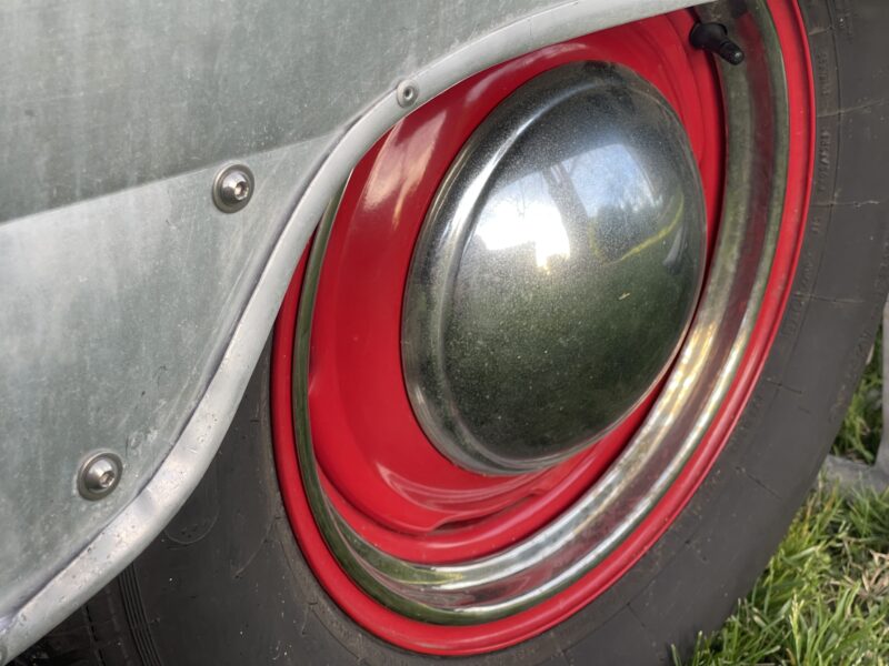 The trailer measures about 14 feet long, 78½ inches wide, and just 8 feet tall. Those modest dimensions make it easy to tow and simple to store, which is part of the reason these smaller trailers have remained so popular with vintage camping enthusiasts. It recently made a 100-mile tow with no problems and rides well on a good set of tires.