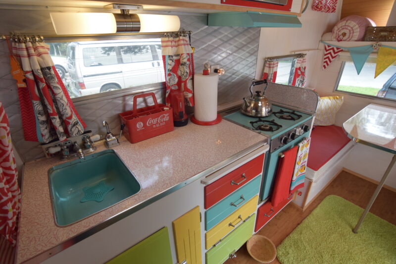 The “Classic Coke” exterior is super clean and classy. Inside are splashes of color that make every camping trip a fun destination.