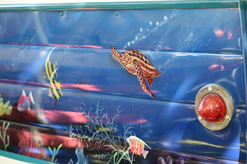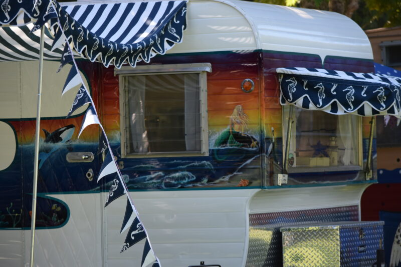 Outside, she turned to artist Ed Hubbs to bring the trailer’s exterior to life with a custom wildlife airbrushed scene inspired by the original Oasis design. The result is a perfect blend of nostalgia and storytelling.