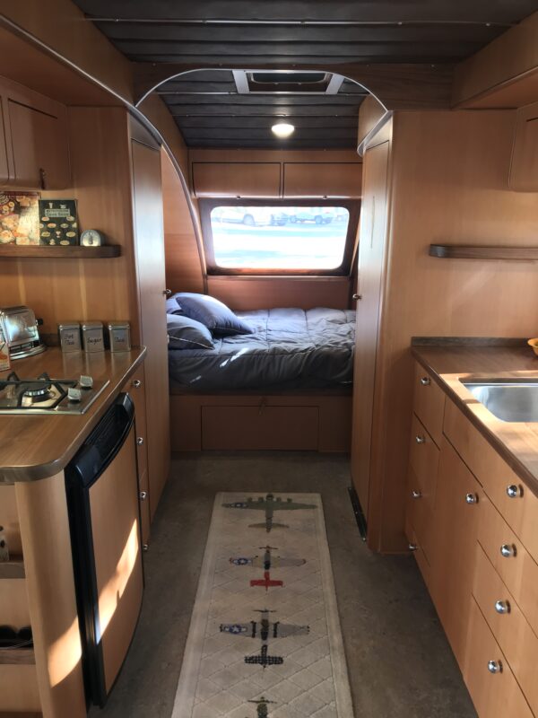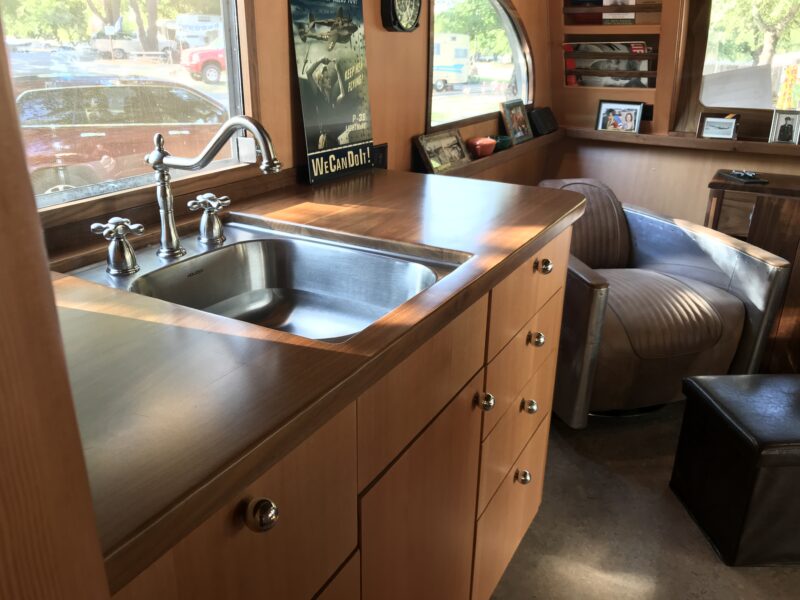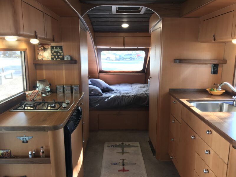 One of the most notable updates is the addition of a stainless steel wet bath. This wasn’t part of the original 1947 design, but it transforms the trailer into a fully self-contained unit, making it far more practical for modern travel while still respecting its heritage.