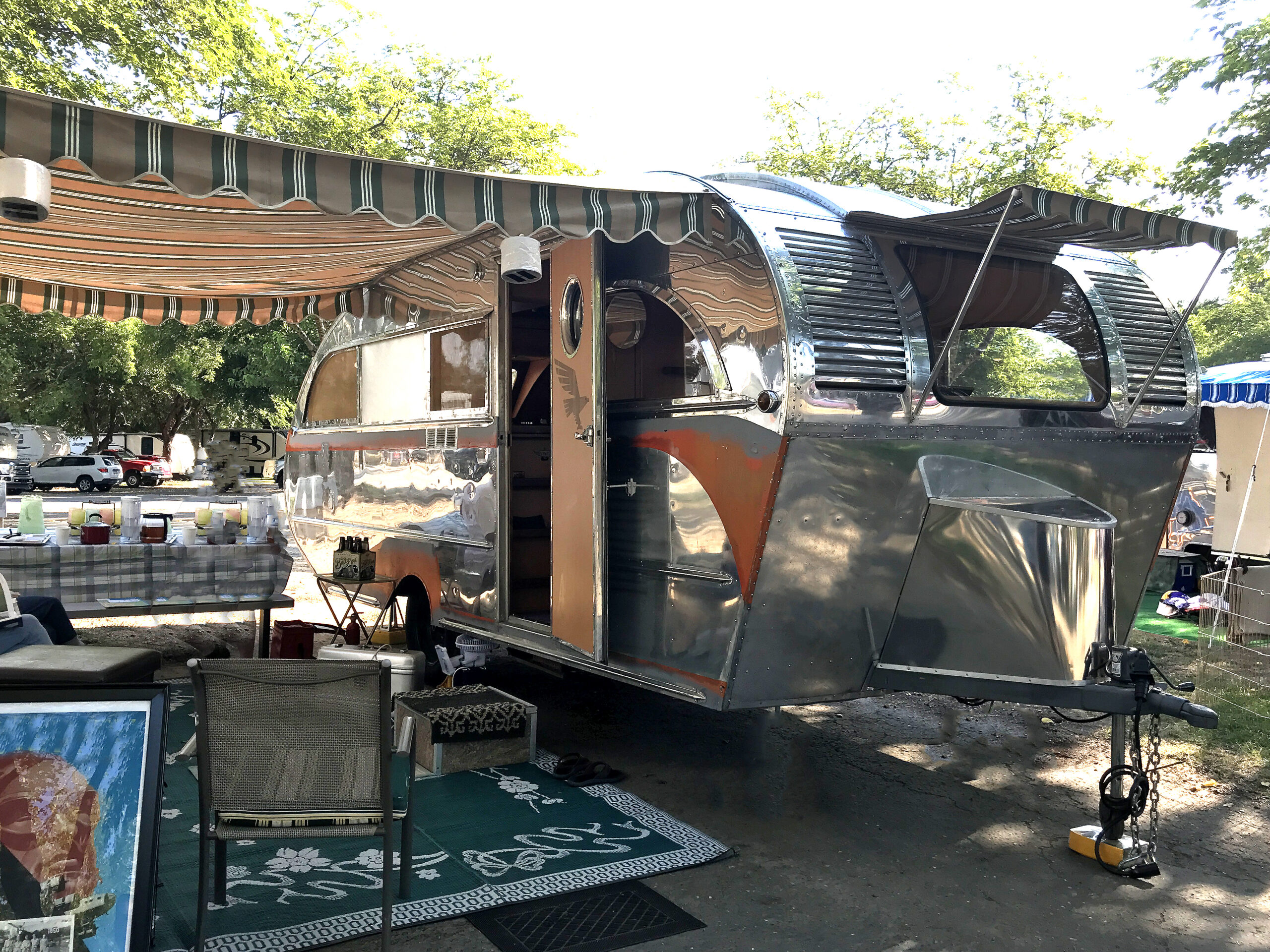Outside, the trailer wears its natural patina proudly. For some, that weathered aluminum tells the story best. For others, it offers an opportunity — polish it to a mirror shine or refinish it to match your vision.