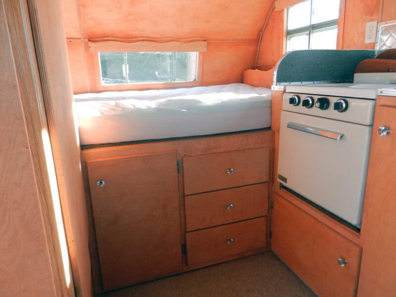 Despite its modest size, the trailer is relatively sturdy, weighing in at about 1,720 pounds dry with a hitch weight of around 300 pounds. When new, this little trailer sold for $1,195 F.O.B. at the factory in Pomona. For the early 1950s, that represented a significant but attainable investment for families looking to explore the growing network of American highways and campgrounds.