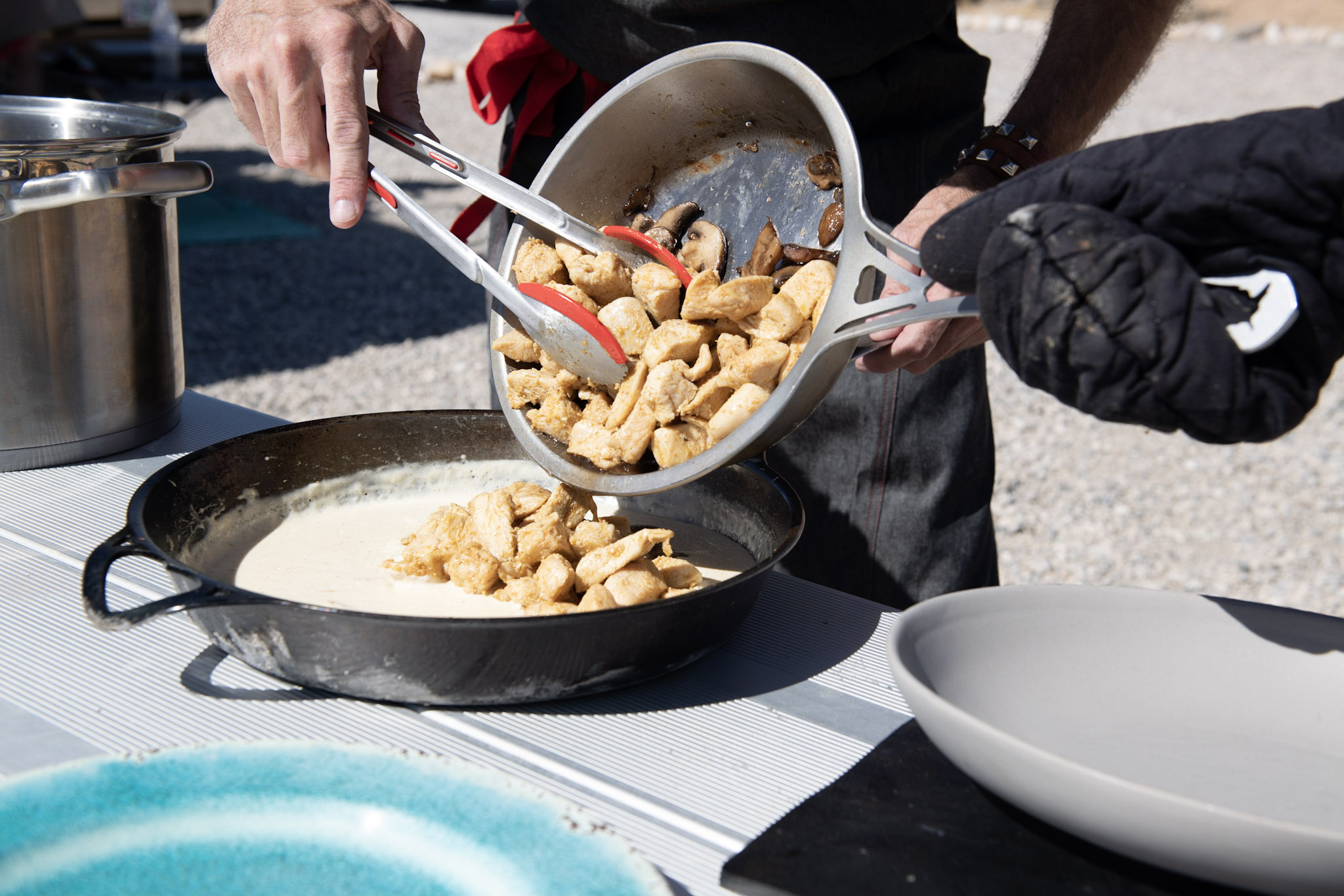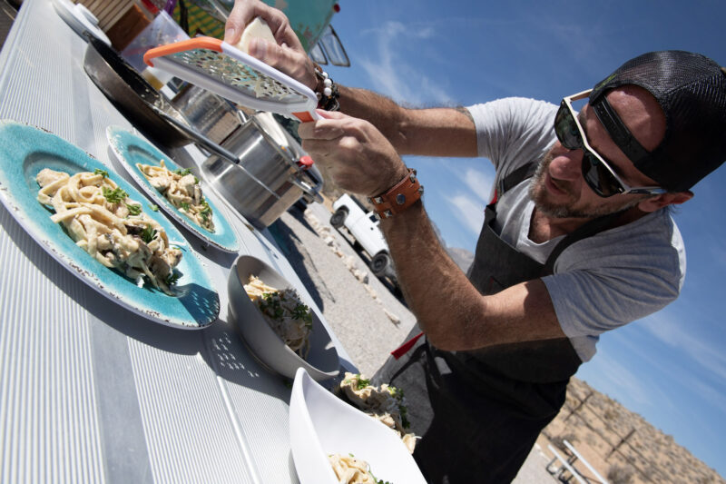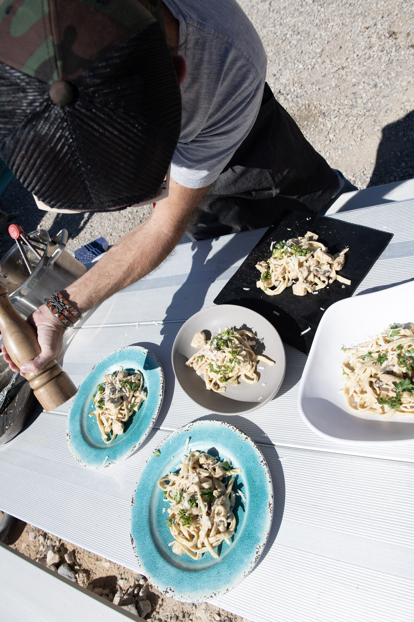 On this trip, Cate hooked up with Bart Cops, aka Camper Chef, to make some pasta! They shared the photos, the fun, and the recipe.