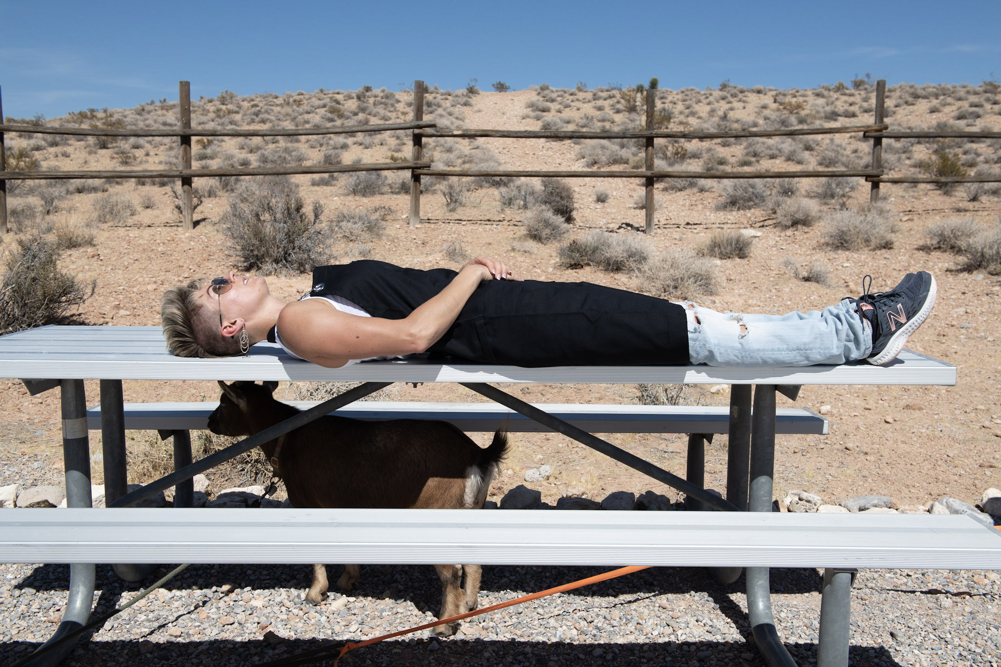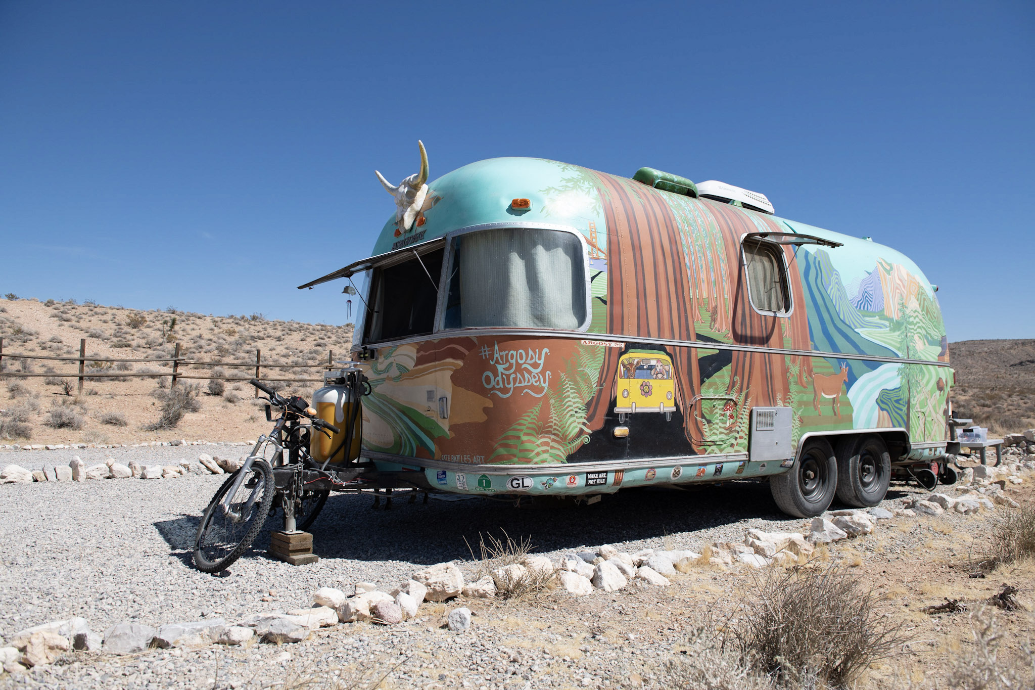After selling their bar and home in Asheville, NC, Chad and Cate Battles renovated a 1976 Airstream Argosy 22ft. While Chad did nearly all the interior work himself, Cate painted a mural around the exteriorthat represented the country’s changing landscapes. Along with their pet goat, Frankie, and pup, Maggie, they have traveled nearly 40,000 miles around North America the past 2 and 1/2 years, including two countries and 28 states. Their blog details the pets’ adventures around the country and offers tips about travel destinations, free and affordable campsites, and pet-friendly hikes, activities, and points of interest.