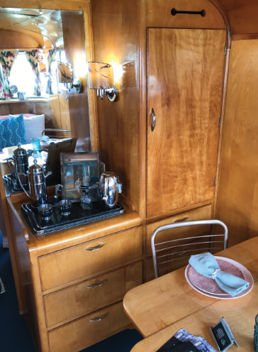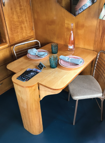 The trailer still retains many of the features that made Spartan trailers so special in the late 1940s. Inside, the original drop-leaf dining table is still in place, a practical design that allowed campers to expand or reduce the table space depending on their needs. Details like that are part of what makes vintage trailers so interesting—they were thoughtfully designed for efficient living long before modern RVs packed in every convenience imaginable.