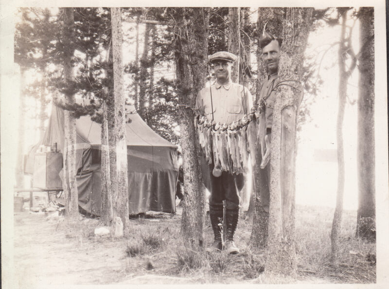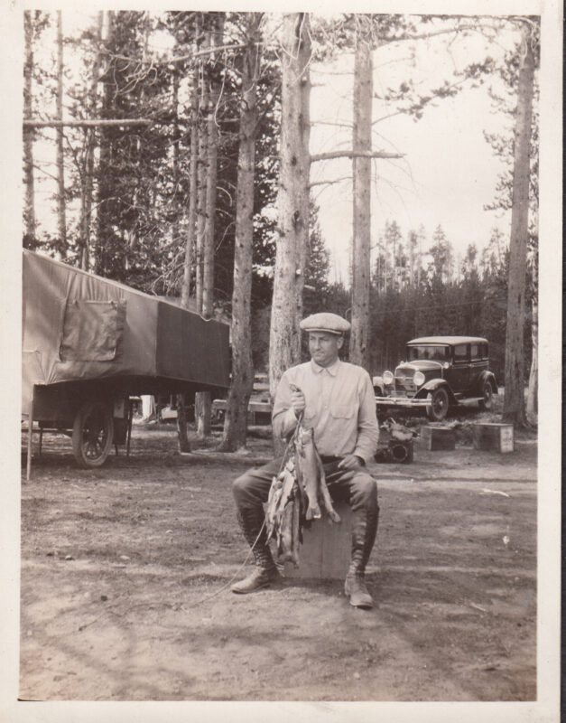 The photos are named: Yellowstone camping ca.1929. Dick Sr & Gilkie trailer