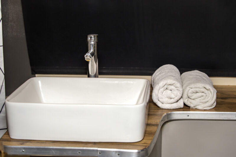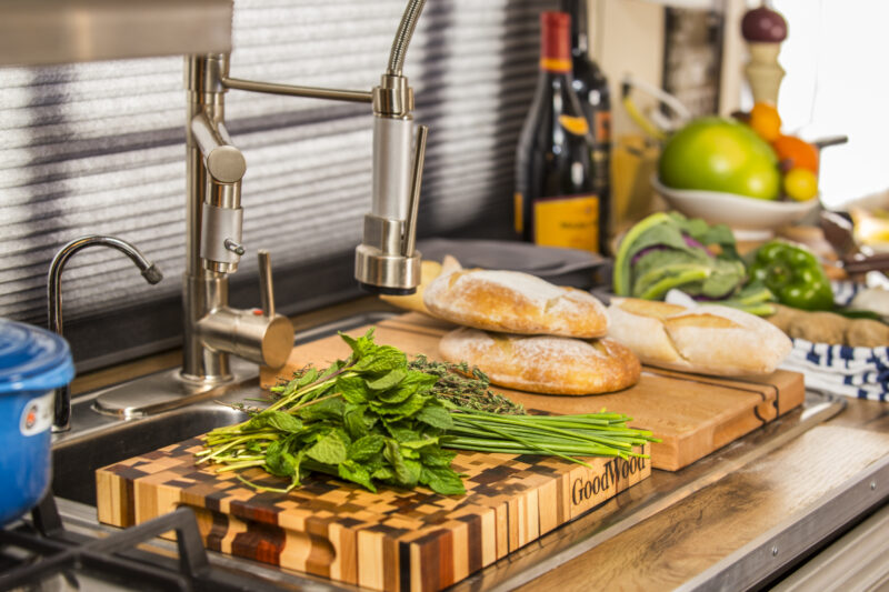 Its compact design cleverly maximizes space for cooking and storage, making it perfect for whipping up everything from simple breakfasts to full meals while parked at a campsite. With updated appliances and thoughtfully arranged prep areas, it’s easy to create dishes that would be at home in a stationary kitchen.