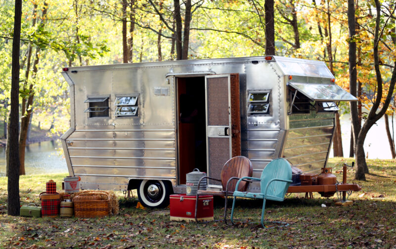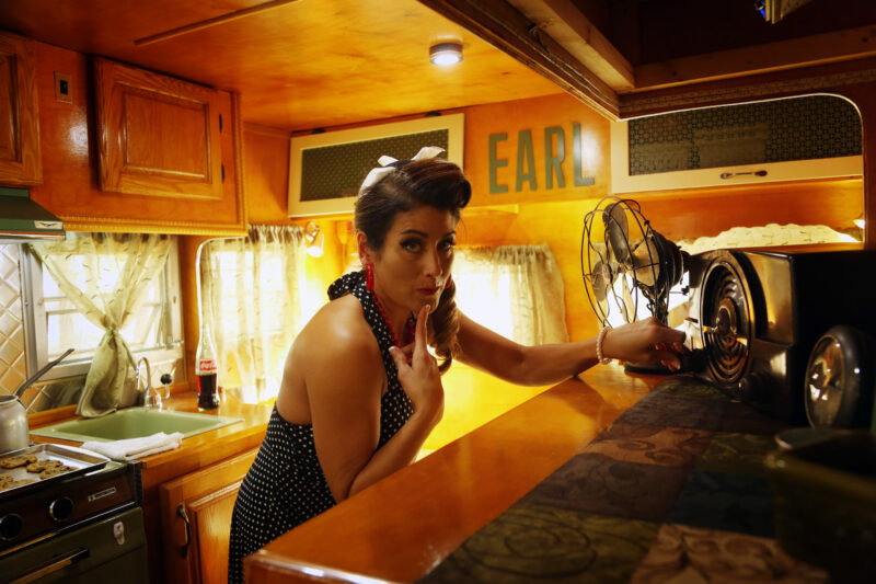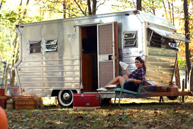 Adding a touch of classic glamour to Earl’s story, model Lora Stuck of Olney, Illinois—who has a passion for vintage-inspired photography—discovered the trailer at the Southeastern Illinois Vintage Trailer Rally in Sumner. “Steven’s camper really stood out to me,” Lora shared. “It had a particularly interesting back story.” Inspired, she arranged a photo shoot with Earl at Taylor Lake Campground in Olney. “I feel truly honored to have had the opportunity to take pictures with this rare vintage gem,” she said.