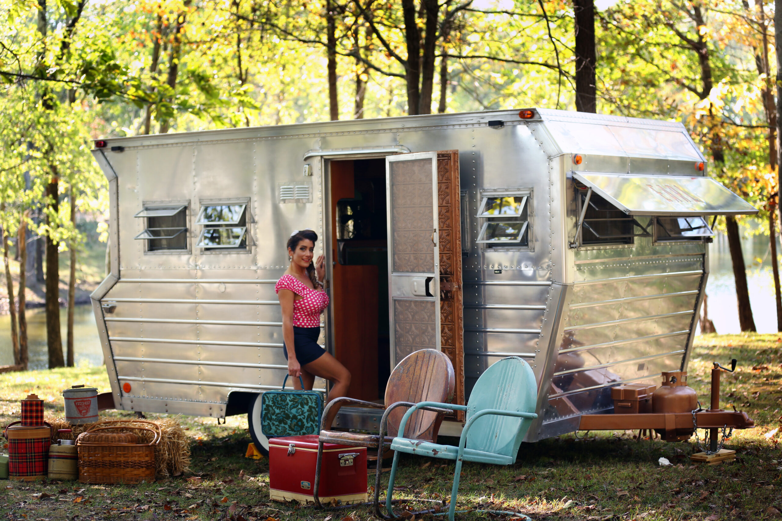 Adding a touch of classic glamour to Earl’s story, model Lora Stuck of Olney, Illinois—who has a passion for vintage-inspired photography—discovered the trailer at the Southeastern Illinois Vintage Trailer Rally in Sumner. “Steven’s camper really stood out to me,” Lora shared. “It had a particularly interesting back story.” Inspired, she arranged a photo shoot with Earl at Taylor Lake Campground in Olney. “I feel truly honored to have had the opportunity to take pictures with this rare vintage gem,” she said.