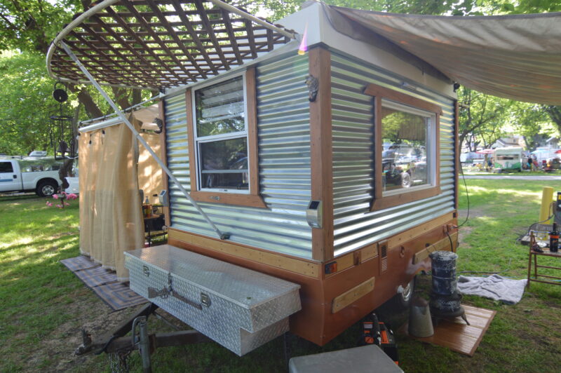The result is nothing short of amazing. Within just nine feet of space, they’ve managed to create a cozy cabin-style camper complete with a full-size bed, flat-screen TV, and all the comforts of home. Their ingenuity and craftsmanship make this one-of-a-kind build a standout addition to Trailerfest!
