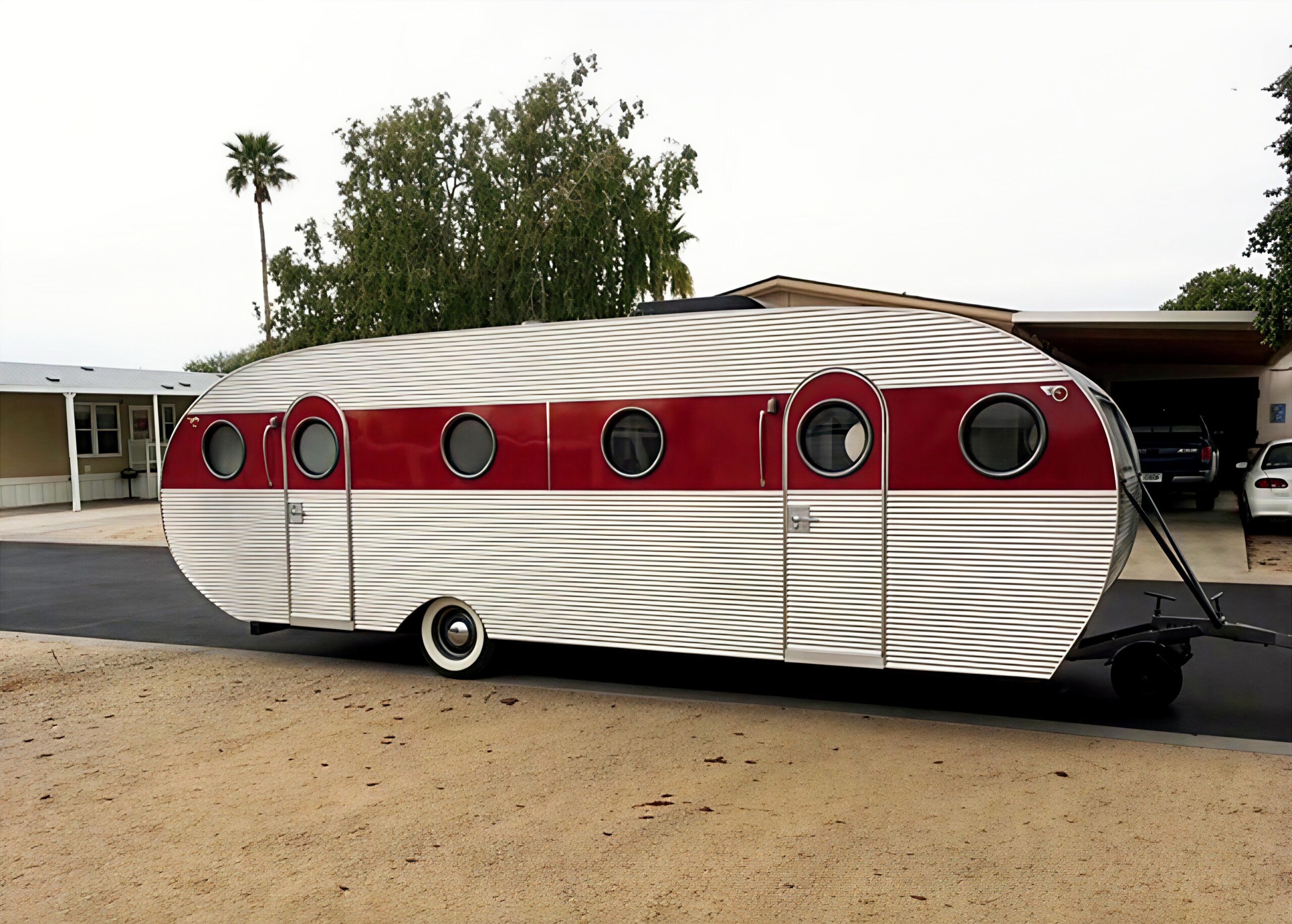 There’s something special about bringing a vintage trailer back to life—especially one as distinctive as a 1950 Airfloat Land Yacht. This 24-foot model (28 feet overall) has undergone a meticulous, years-long restoration that stayed true to its retro character while thoughtfully updating it for modern travel. Now complete, it’s ready for its next chapter- and currently offered for sale.
