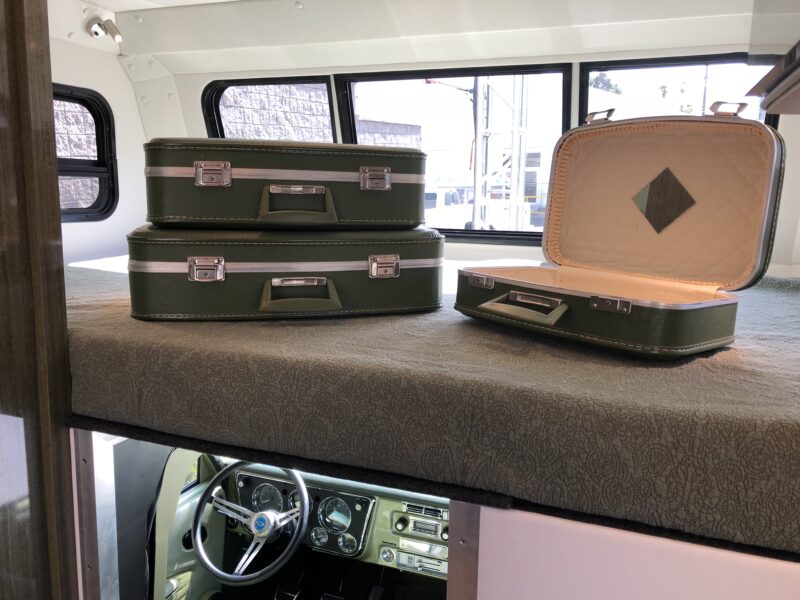 In December of 2017, Josh surprised his team with this project by gathering everyone together and driving the rig into the shop where he announced that they would be presenting the 1972 Custom Camper at SEMA in November of 2018. Specializing in custom interior rebuilds, the CMI team was planning on removing the original interior and rebuilding it while keeping the original patinaed exterior. Once the build got started, they found that the camper was full of rot. When they removed the interior’s structure, the camper walls collapsed. Not deterred, Josh and his team kept the original design and dimensions, but totally rebuilt the entire camper. Starting with a new aluminum frame, this build was literally a frame up! The rebuild took eleven months and 2,200-man hours to complete. Every crevice was touched and the following modifications were made.