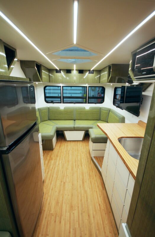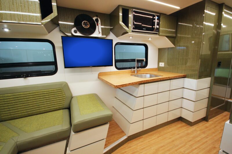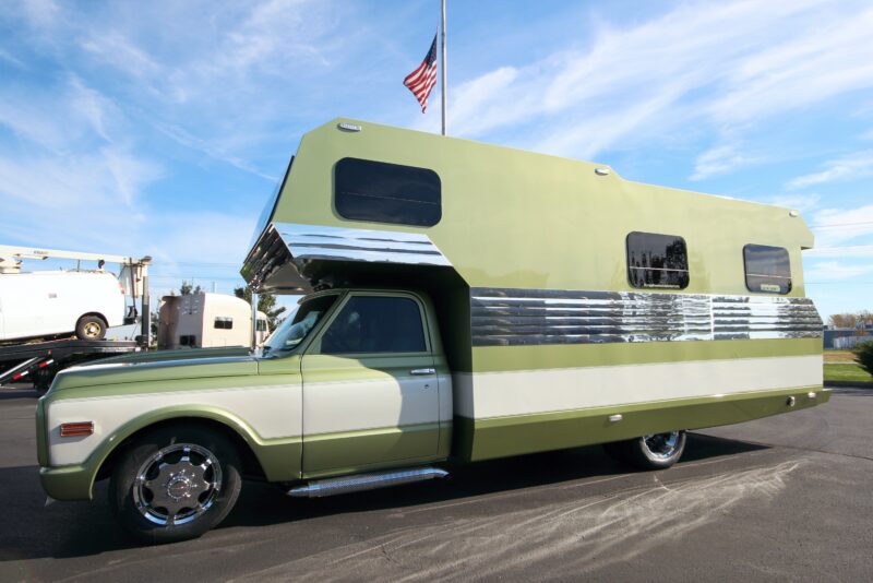 A 1972 Chevy C-30 Custom Camper made by the Mitchell Company was the canvas for this full-on custom build by Creative Mobile Interiors of Grove City, OH.