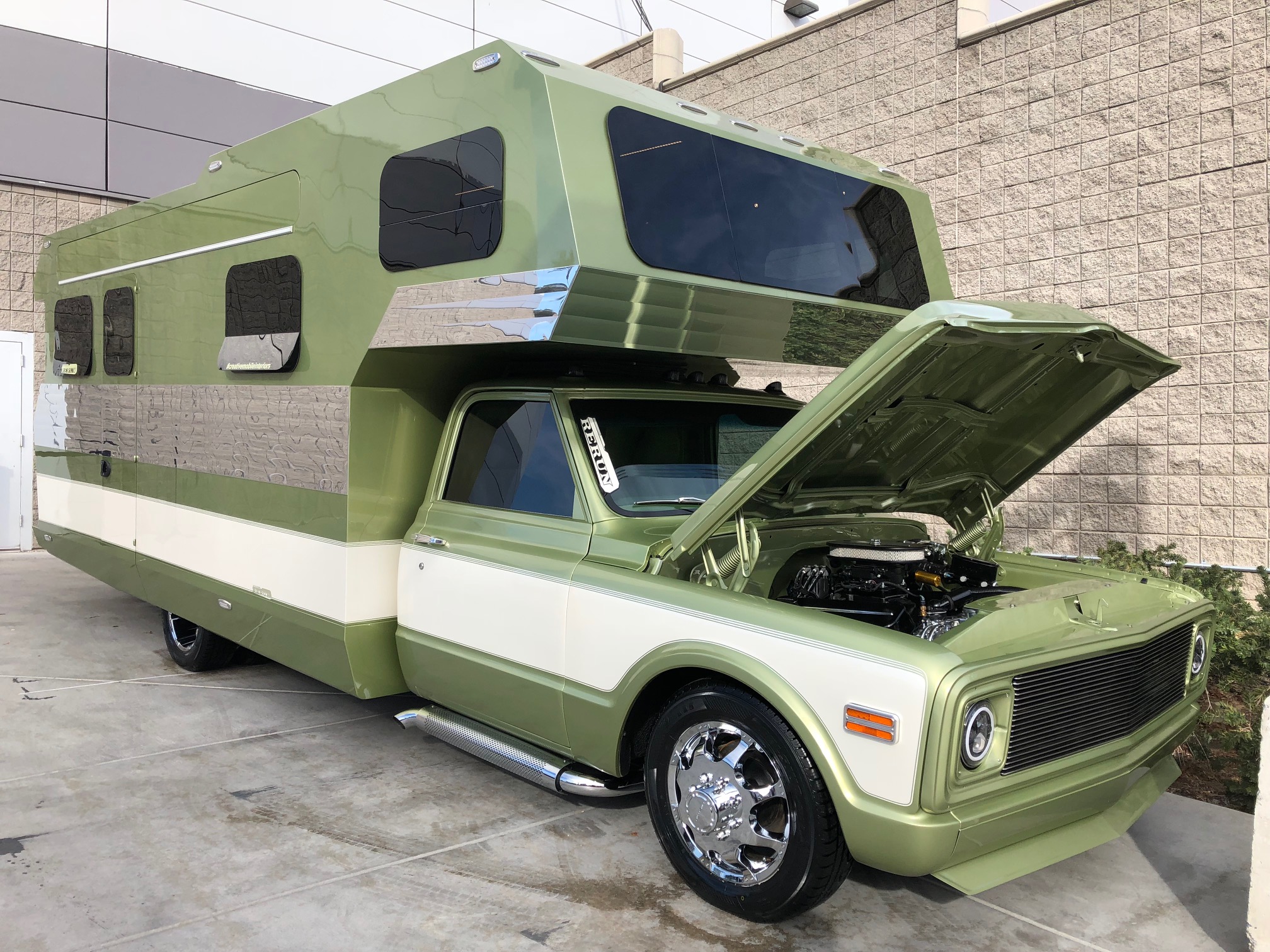 A 1972 Chevy C-30 Custom Camper made by the Mitchell Company was the canvas for this full-on custom build by Creative Mobile Interiors of Grove City, OH.