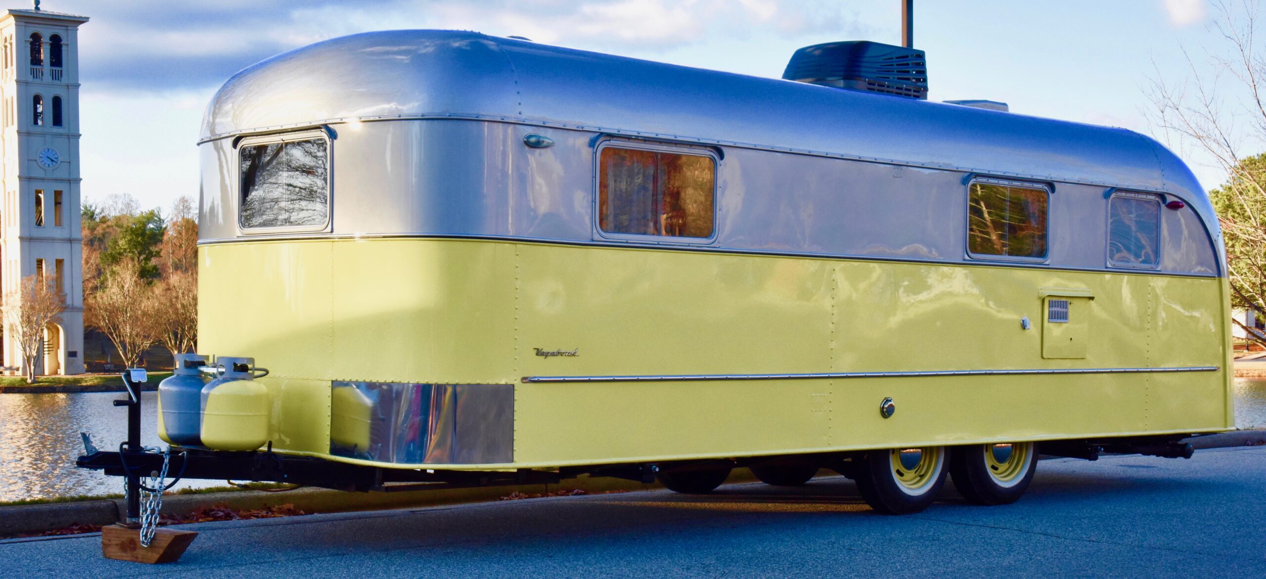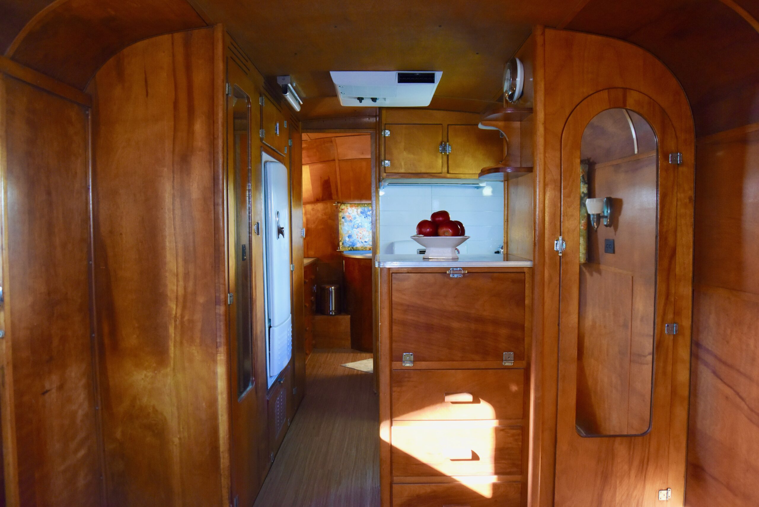 A 1950 Vagabond Model 232 was discovered in an old campground in upstate South Carolina, where it had been stored under a shed since the early 1970s. Remarkably well preserved, the trailer was rescued just days before the property was cleared for redevelopment. After dismantling the shed and welding on a new tongue, it was safely transported to the shop. Inside, the original woodwork remained in excellent condition, requiring only a thorough cleaning and treatment with orange oil wood conditioner.