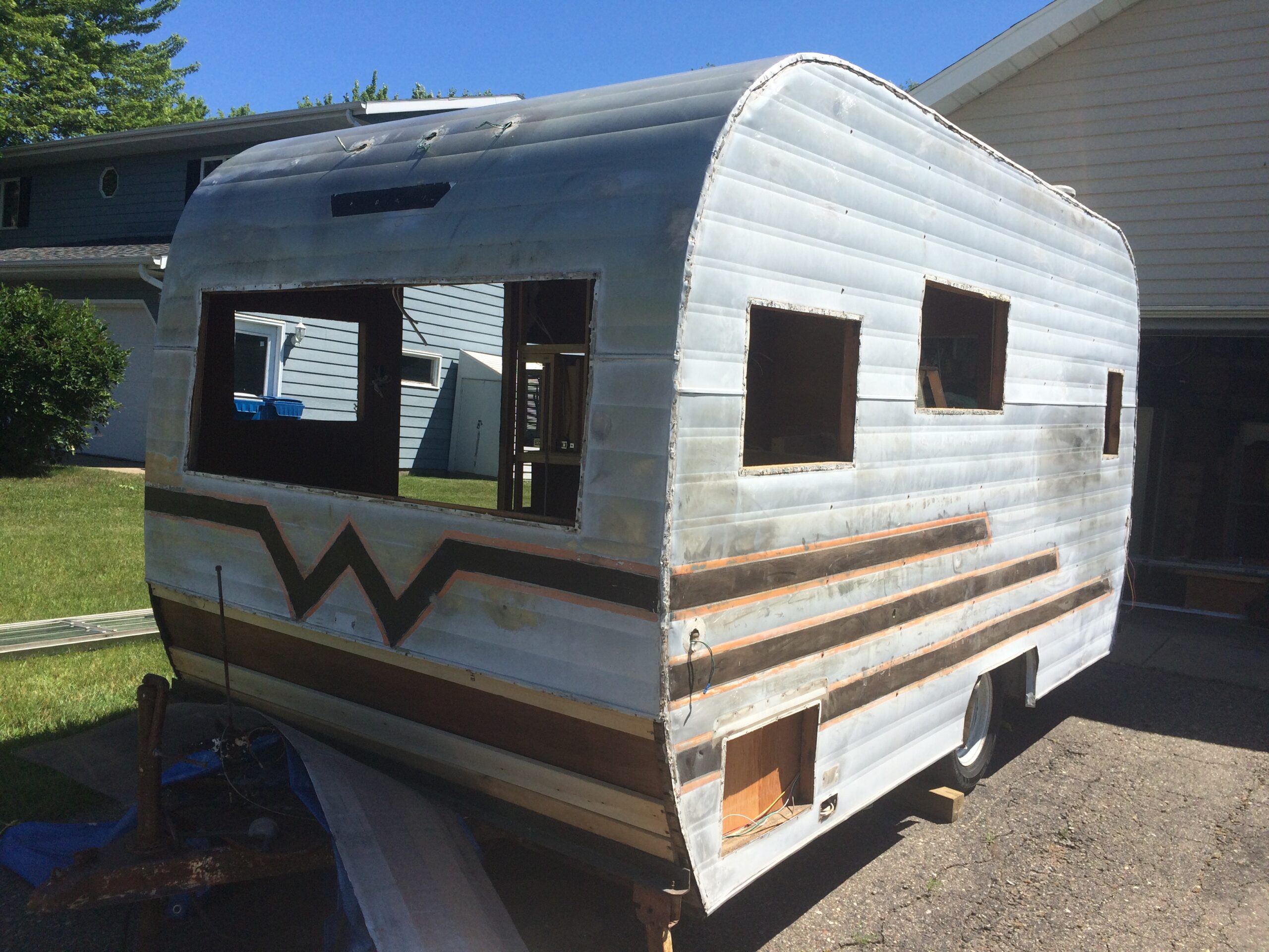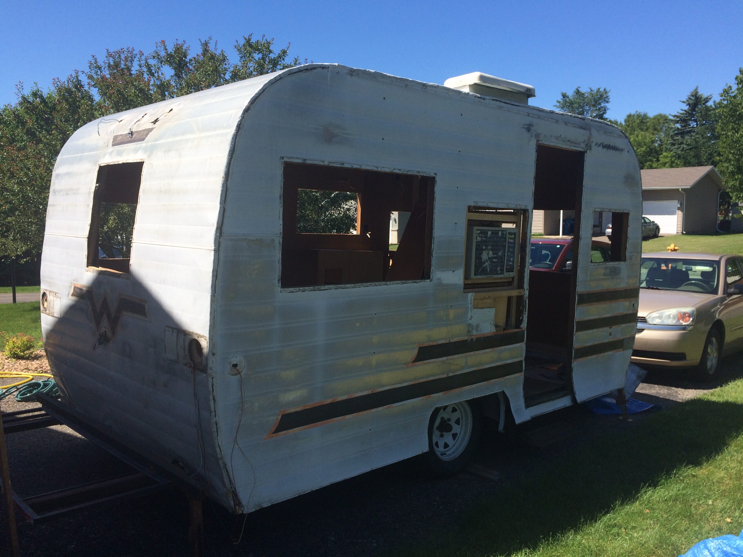 We were excited to get started, but the project ultimately took three years to complete. The first year, my husband broke his leg. The second year, we discovered a major leak that required removing large sections of the ceiling and wall structure. All the while, we were both working full-time, fitting in work during weeknights and weekends through the spring, summer, and fall. Living in Minnesota, our window for working on it was limited, and we had no strict deadline.