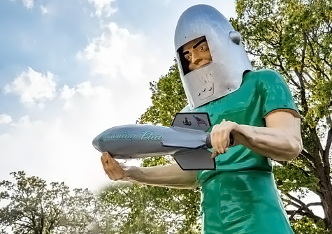 South of the city, the skyline gives way to small-town charm. In Joliet, stop at the Route 66 Welcome Center inside the old Rialto Square Theatre for maps, souvenirs, and local insights. A short drive farther south, Wilmington is home to the Gemini Giant, one of the most iconic “Muffler Men” statues along the route—a must-see photo stop that perfectly captures Route 66’s quirky roadside appeal. Fuel up often. Gas stations thin out between smaller towns.