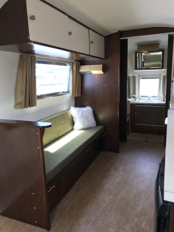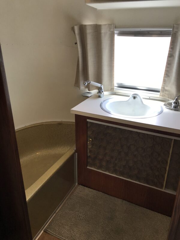 When Airstream’s corporate archivist reviewed factory records, the serial number was listed as “Special-Art.” Board meeting minutes from 1961 referenced experimentation with anodized “Easter Egg” trailers and plans for something called a “Golden Caravan” — described as a limited-production Airstream built with no expense spared and distinctive exterior identification. The gold panel and upscale details, including the glittering bathtub, align closely with those notes.