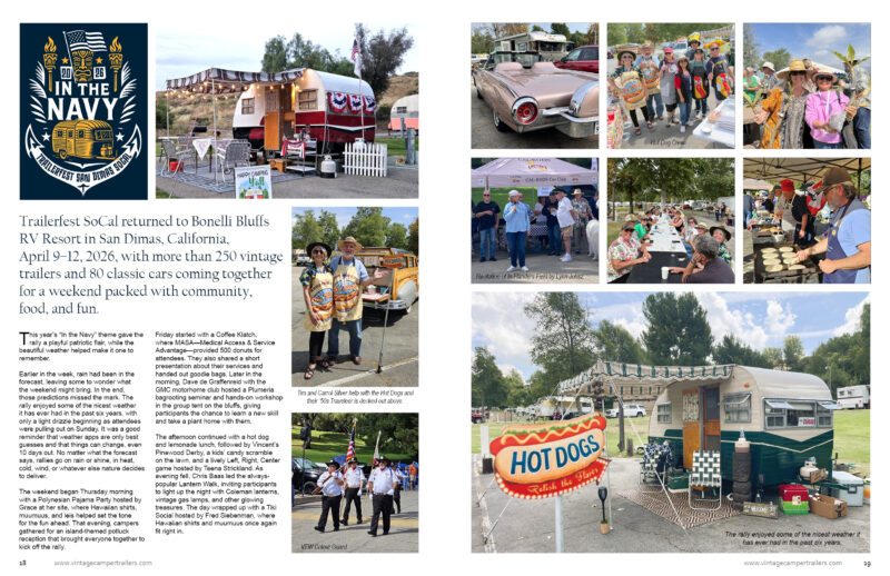 Rally season is also front and center in this issue. Readers will find coverage of Trailerfest SoCal in San Dimas and the Tin Can Tourists Winter Convention, both of which capture the fun, creativity, and community that make vintage trailer gatherings so special. If you enjoy seeing how people camp, decorate, restore, and celebrate these classic rigs, this issue delivers plenty of ideas and inspiration.