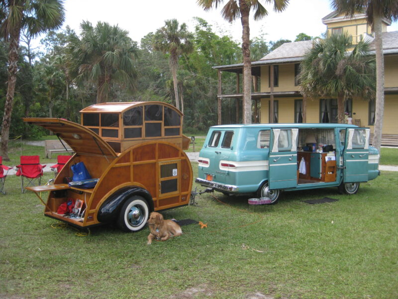 For many years, vintage trailer enthusiasts from across the Southeast gathered at the historic Koreshan State Historic Site in Estero, Florida, for the Tin Can Tourists Florida Homecoming, also known as the Koreshan Unity Settlement Gathering & Show. However, the event wrapped up around 2017. This story and photos are from the archives of Vintage Camper Trailers Magazine, Issue 36.