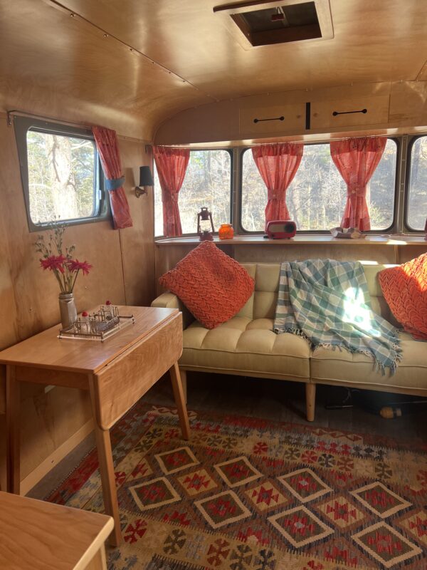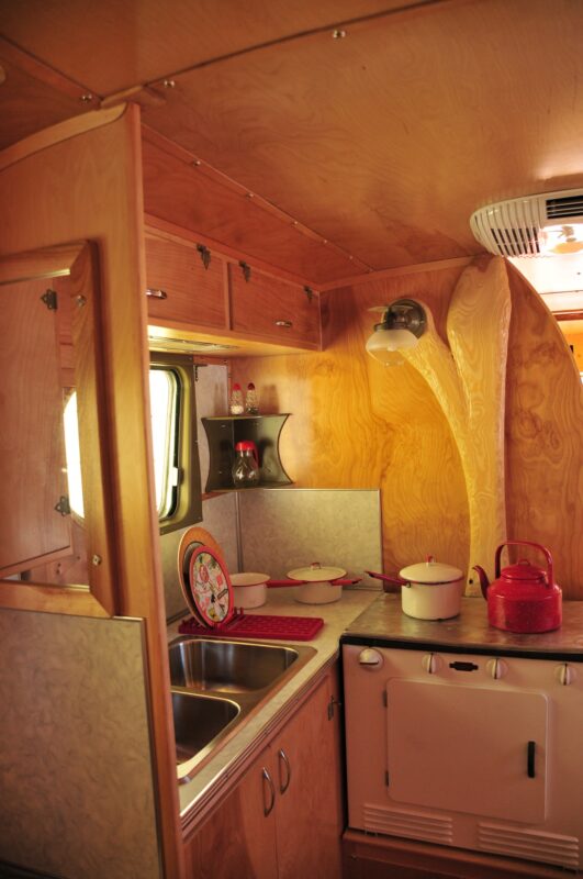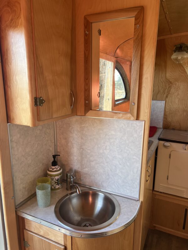 One of the most charming features is the fully functional gas light, installed as a nostalgic yet practical backup should you ever find yourself without power. The original Coleman stove has been completely refurbished and works beautifully, while the oven has been disabled for safety.