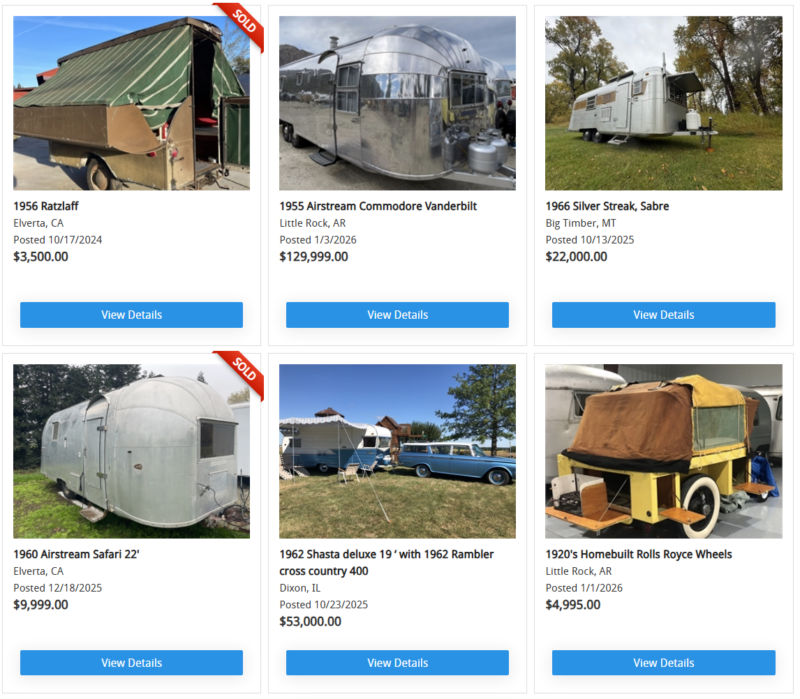 Vintage trailers are unique. Buyers aren’t just browsing—they’re hunting for something specific. Whether it’s a 1950s canned ham, a polished Airstream, or a rare model in a certain length, serious buyers know exactly what they want. Check out our classified ads for yourself.